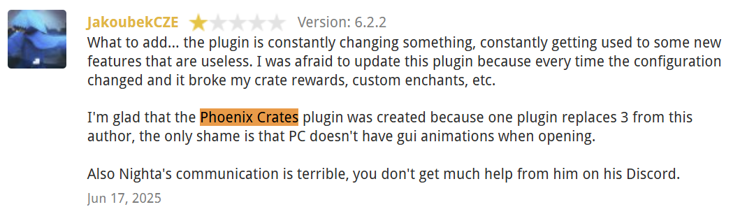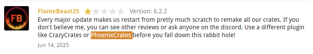 Takeaway: If your server already relies on custom models or advanced item plugins, Phoenix Crates provides broader integration coverage.